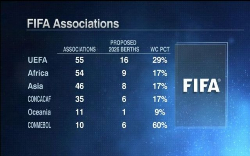 Khi mở rộng số lượng đội, FIFA cũng đã phân bổ lại số suất cho từng châu lục. Đây là điều khiến người hâm mộ châu Á, trong đó có Việt Nam, đặc biệt quan tâm.