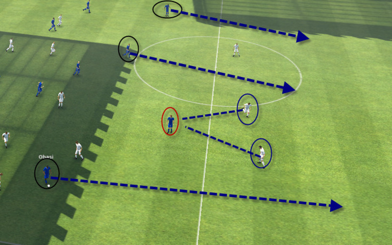 Tiền đạo ảo cũng có tác dụng kéo giãn hàng phòng ngự đối phương. Việc trung vệ bị hút ra khỏi vị trí quen thuộc sẽ tạo ra khoảng trống cho các tiền đạo cánh hoặc tiền vệ xâm nhập từ tuyến hai. Điều này đặc biệt hiệu quả trước những đội bóng phòng ngự số đông và chơi thấp.